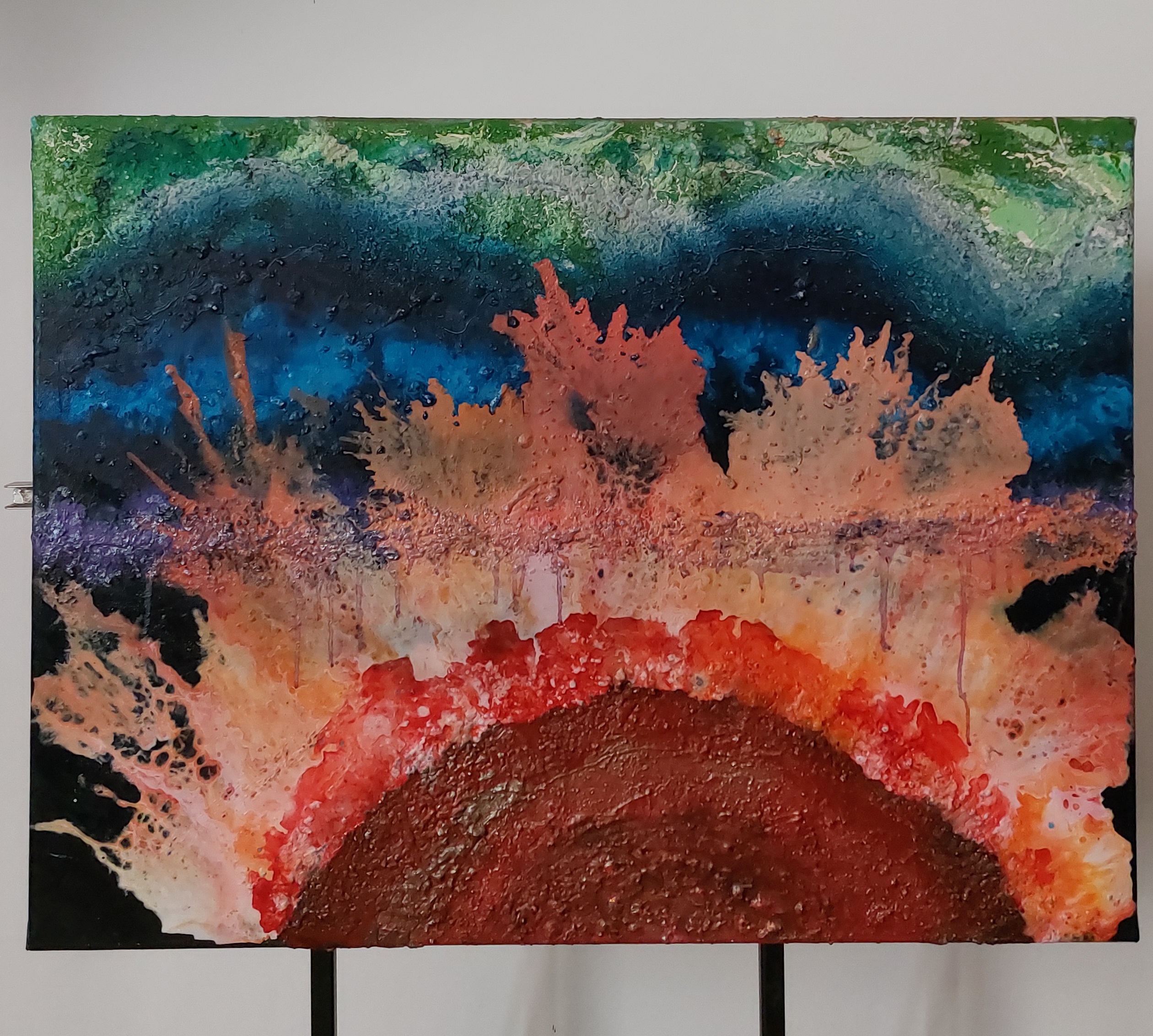 Rusz w podróż w głąb emocji z naszym porywającym abstrakcyjnym dziełem sztuki. Tryskający żywymi kolorami i dynamicznymi kompozycjami, ten obraz służy jako wizualna eksploracja ludzkiej psychiki, przedstawiając istotę surowych uczuć i najgłębszych myśli.